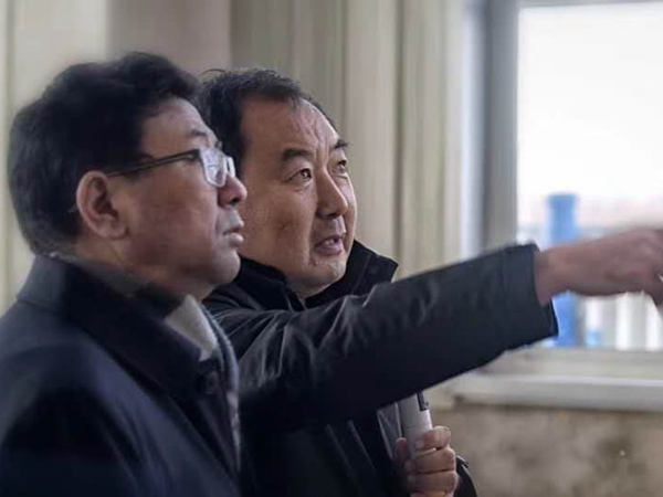 2019年1月8日在新公司,董事長崔洪亮向市委書記王景武介紹油田泥漿不落地壓濾機情況
